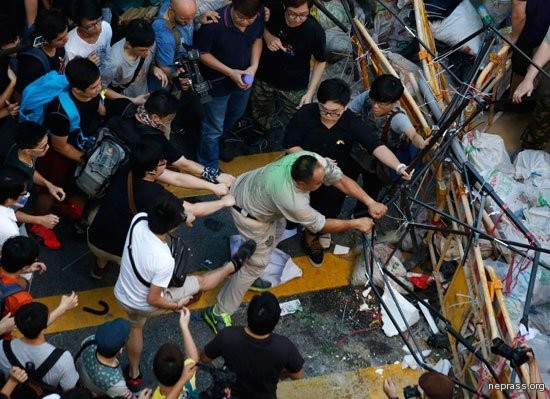 وكانت مونغكوك شهدت أعمال عنف من قبل خصوصا عندما اشتبك المتظاهرون مطلع أكتوبر مع مئات من سكان المنطقة ومعهم عدد من الناشطين الموالين لبكين وبعض رجال المافيا الصينية، الذين اثارت تحركات المحتجين غضبهم.