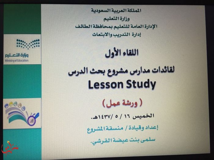 رعت مديرة إدارة التدريب والابتعاث الأستاذة / لطيفة العتيبي ورشة القائدات التي عقدتها إدارة التدريب والابتعاث (بنات) بمحافظة الطائف يوم امس الخميس الموافق ١٦/ ٥/ ١٤٣٧هـ انطلاقًا من حرص الإدارة على دعم المشروع الوزاري "مجتمعات التعلم المهنية في ضوء منحى بحث الدرس Lesson Study".