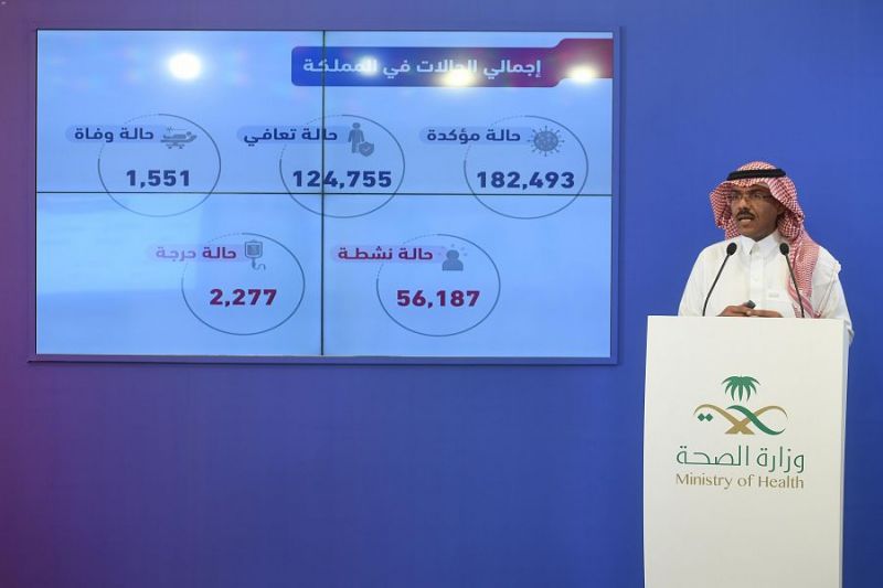 وأشار إلى أن عدد المتعافين وصل ولله الحمد إلى (124755) حالة بإضافة (2627) حالة تعافٍ جديدة، وبلغ عدد الوفيات (1551) حالة، بإضافة (40) حالة وفاة جديدة، كما بلغ إجمالي الفحوصات في المملكة (1608025) فحصاً مخبرياً دقيقاً.