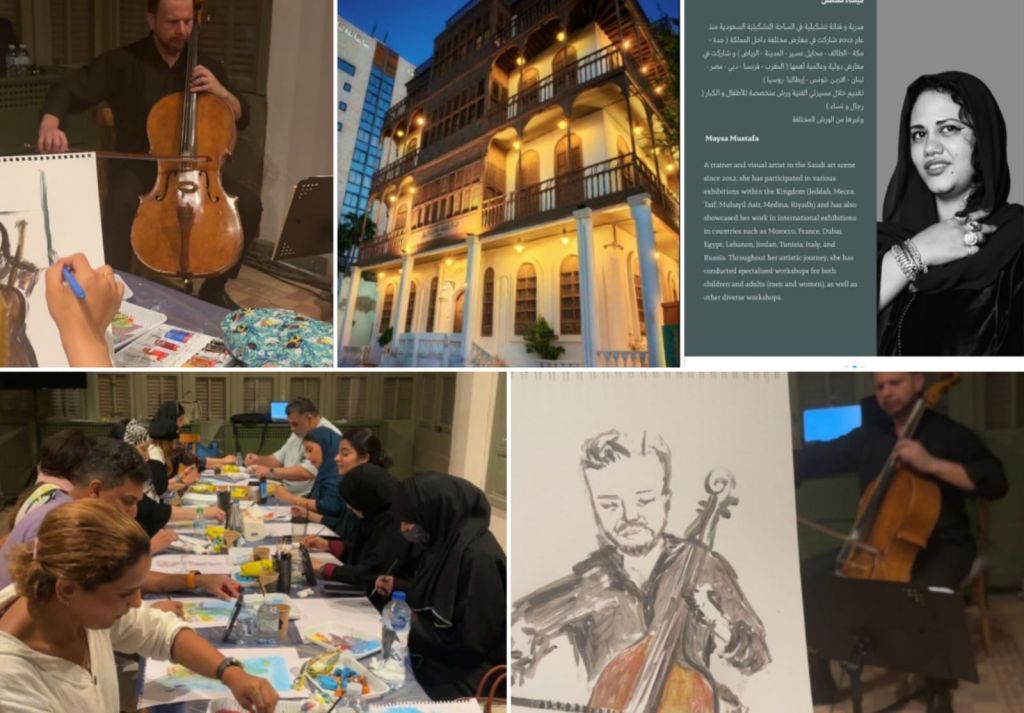 أما اليوم الثاني، فقد شهد تأسيس اللوحات برؤية تأثيرية وانطباعية، حيث قام المشاركون برسم بيت الشربتلي بأسلوب فني خاص، كما قدّم الفنان والموسيقار العالمي، عازف آلة التشيللو "لاديس"، عزفًا حيًا، رافقه تحدٍّ فني للمشاركين، تمثل في رسم العازف "لايف" بأسلوب تأثيري، خلال ساعة واحدة فقط، وسط تفاعل حماسي على وقع المقطوعات الموسيقية العالمية، في أجواء فنية غامرة احتضنها بيت الشربتلي الثقافي.