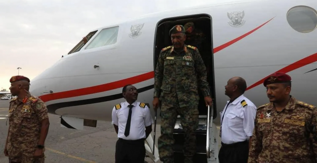 يُذكر أنه بعد اندلاع الحرب، انتقلت العاصمة إلى مدينة بورتسودان على ساحل البحر الأحمر، واتخذت «عاصمة مؤقتة» تدار منها أعمال الحكومة، لكن زيارات البرهان لم تنقطع عن زيارة قواته في المدينة، بيد أنه كان يستقل في زياراته تلك طائرات مروحية. ويعد هبوط الطائرة الرئاسية في مدرج مطار الخرطوم، الذي تعرض لتدمير كبير، خطوة تستهدف إعادته للعمل مجدداً.