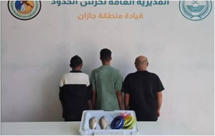 ضبطت الدوريات الساحلية لحرس الحدود في بيش بمنطقة جازان مقيمًا من الجنسية اليمنية ومواطنين، مخالفين للائحة الأمن والسلامة لمزاولي الأنشطة البحرية في المناطق البحرية للمملكة العربية السعودية؛ وذلك لممارستهم الصيد دون تصريح، وبحوزتهم أسماك مصيدة، وتم اتخاذ الإجراءات النظامية بحقهم بالتنسيق مع الجهات المختصة.