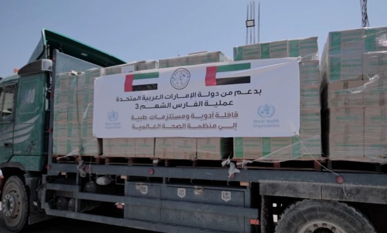 سلمت دولة الإمارات العربية المتحدة ضمن جهودها المتواصلة وبالتعاون مع منظمة الصحة العالمية دفعة جديدة من الأدوية والمستلزمات الطبية لمستودعات المنظمة تمهيداً لنقلها إلى مستشفيات قطاع غزة، وذلك في ظل الانهيار الكبير والتدهور الحاد الذي يشهده القطاع الصحي نتيجة الحصار المستمر.