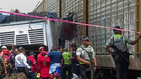 لقي 10 أشخاص مصرعهم وإصابة 41 آخرين, اليوم, جراء اصطدام قطار بحافلة عند تقاطع للسكك الحديدية في ولاية مكسيكو في المكسيك.