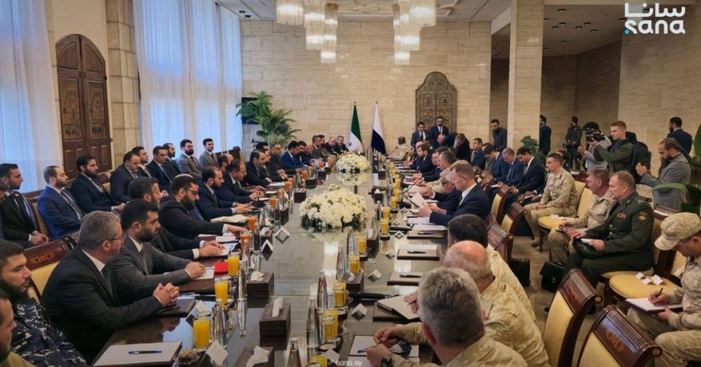 عُقد اليوم اجتماعٌ موسعٌ في قصر تشرين بدمشق ضم عدداً من المسؤولين السوريين برئاسة وزير الخارجية والمغتربين أسعد حسن الشيباني، ووفداً روسياً رفيع المستوى برئاسة ألكساندر نوفاك نائب رئيس حكومة روسيا الاتحادية وفق "سانا".
