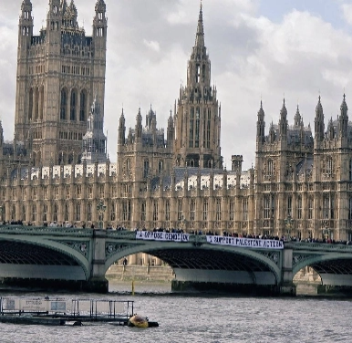 أفادت شرطة العاصمة لندن (ميتروبوليتان) باعتقال مئات المتظاهرين خلال احتجاجات في ميدان ترافالغار وجسر وستمنستر، بتهمة عرض لافتات تدعم حركة فلسطين أكشن، وهي مجموعة محظورة بموجب قوانين مكافحة الإرهاب البريطانية، إذ تم الكشف عن لافتة تؤيد المجموعة على الجسر أثناء المظاهرات المستمرة في وسط المدينة.