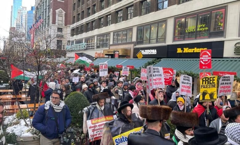احتشد مئات المواطنين في مدينة نيويورك أمام المكتبة العامة في براينت بارك، للمطالبة بفرض حظر فوري على توريد الأسلحة، وفرض عقوبات على إسرائيل، ووقف الإبادة الجماعية المستمرة ضد الشعب الفلسطيني.