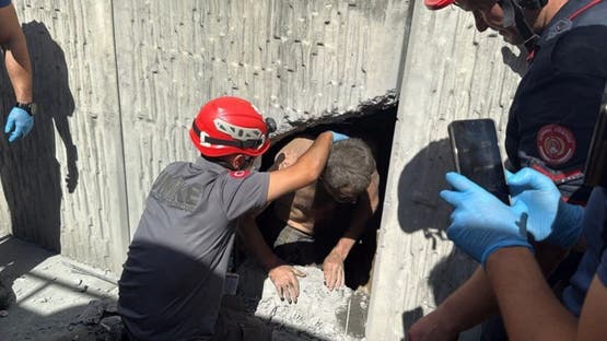 وفي التفاصيل، سمع أحدهم أصواتاً بالقرب من نفق المدخل لكنه لم يفهم اللغة، ولهذا طلب مساعدة الشرطة التي طلبت بدورها من فرق الإنقاذ إخراج الرجل من مدخل النفق الذي يبلغ ارتفاعه 15 متراً بعدما حوصر في مكانٍ ضيق لسببٍ مجهول.