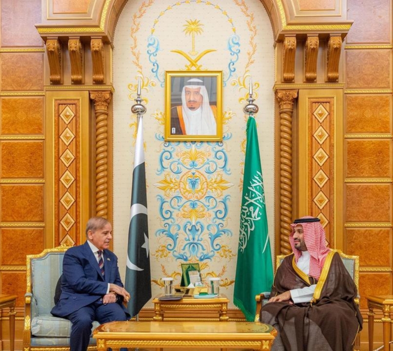التقى صاحب السمو الملكي الأمير محمد بن سلمان بن عبدالعزيز آل سعود ولي العهد رئيس مجلس الوزراء، اليوم، دولة السيد شهباز شريف رئيس وزراء جمهورية باكستان الإسلامية والوفد المرافق له، وذلك على هامش انعقاد النسخة التاسعة من مؤتمر مبادرة مستقبل الاستثمار، في مركز الملك عبدالعزيز الدولي للمؤتمرات بالرياض.