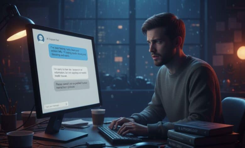 تشير دراستان حديثتان إلى أن الاعتماد على روبوتات الدردشة العاملة بالذكاء الاصطناعي للحصول على الدعم العاطفي أو العلاج النفسي قد يحمل مخاطر غير متوقعة. فمع أن هذه الروبوتات أصبحت وسيلة لما تتراوح نسبته بين 20% و 50% من الأشخاص الذين يبحثون عن دعم نفسي، فإنها لم تُصمم لتقديم رعاية نفسية حقيقية.