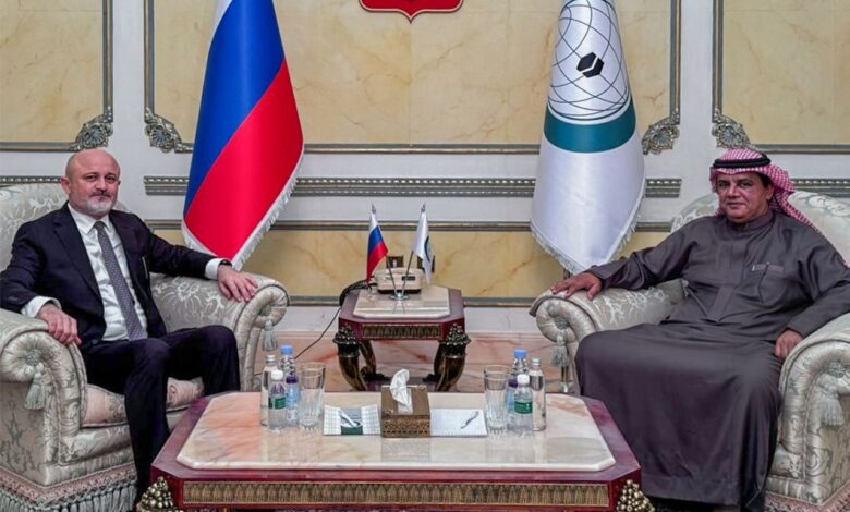 التقى سعادة المدير العام لاتحاد وكالات أنباء دول منظمة التعاون الإسلامي الاستاذ محمد بن عبدربه اليامي، اليوم الخميس (6 نوفمبر 2025)، المراقب الدائم لجمهورية روسيا الإتحادية لدى المنظمة السفير توركو داودوف، وذلك بمقر المندوبية الروسية بجدة.