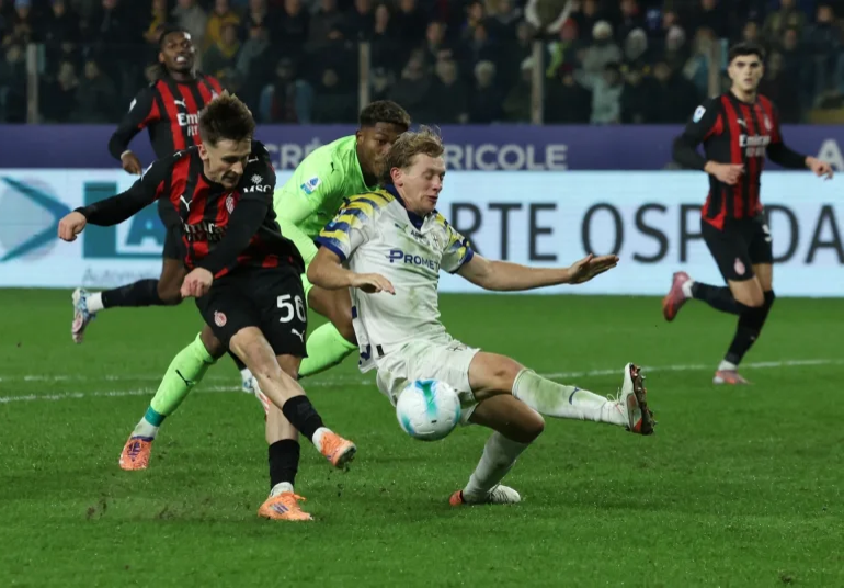 تقدّم ميلان في النتيجة عبر أليكسيس ساليمايكرس في الدقيقة 12، ثم أضاف رافائيل لياو الهدف الثاني من ركلة جزاء عند الدقيقة 25.