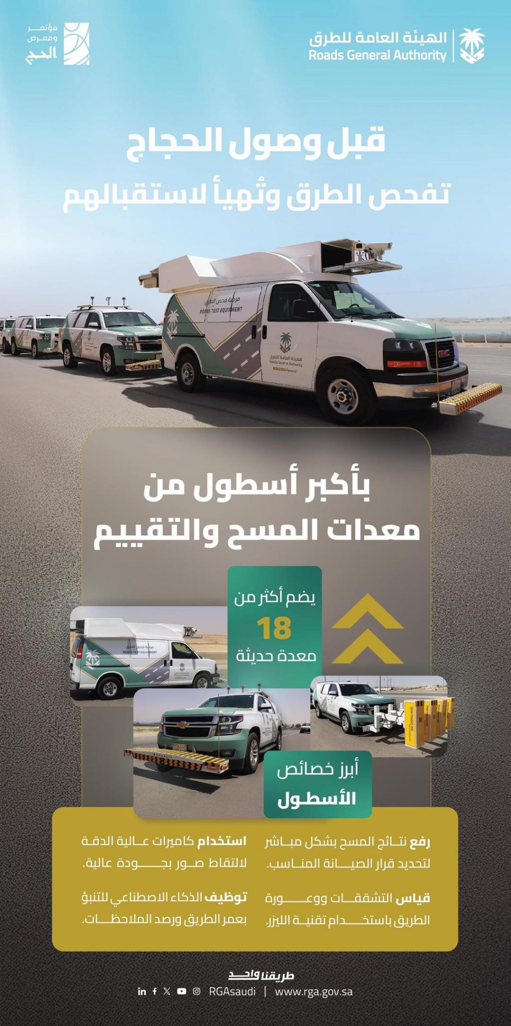 وتواصل "هيئة الطرق" توسيع استخدام أحدث التقنيات والمعدات لتحقيق إستراتيجيتها التي تركز على السلامة والجودة والكثافة المرورية، وذلك في إطار الجهود المستمرة لتعزيز مكانة المملكة مركزًا لوجستيًا عالميًا وتحقيق رؤية المملكة 2030، من خلال تحسين تجربة مستخدمي الطرق وضمان مستويات عالية من الأمان والكفاءة في قطاع الطرق.