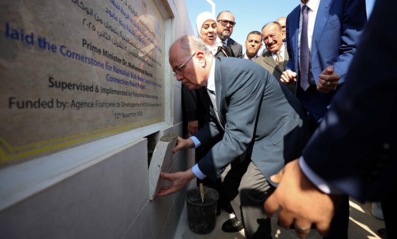 وضع رئيس الوزراء الفلسطيني محمد مصطفى اليوم الأربعاء، حجر الأساس لمشروع نقاط الربط لنظام تزويد المياه بالجملة – نقطة ربط عابود، وهو أحد المشاريع الاستراتيجية الهادفة إلى تطوير قطاع المياه الفلسطيني وتعزيز الأمن المائي الوطني.