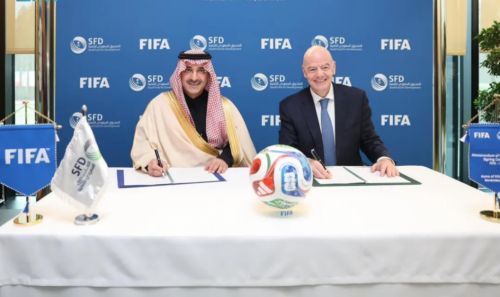 وقّع الرئيس التنفيذي للصندوق السعودي للتنمية سلطان بن عبدالرحمن المرشد، مع رئيس الاتحاد الدولي لكرة القدم جياني إنفانتينو، مذكرة تفاهم لتخصيص مليار دولار عبر القروض التنموية الميسّرة المقدمة من الصندوق السعودي للتنمية؛ للإسهام في تمويل البنية التحتية الأساسية للقطاع الرياضي في مختلف الدول النامية والأقل نموًا حول العالم، في خطوة تهدف إلى تسخير إمكانات الرياضة لدفع عجلة التنمية الاقتصادية والاجتماعية.