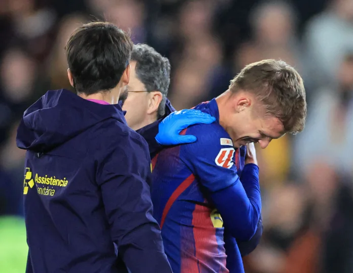 وبعد تسجيله للهدف الثاني لفريقه برشلونة في شباك أتليتيكو مدريد، غادر أولمو أرض ملعب سبوتيفاي كامب نو يشتكي من أوجاع كبيرة في كتفه.