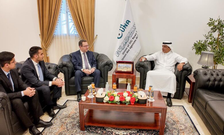 استقبل المدير العام لاتحاد وكالات أنباء دول منظمة التعاون الإسلامي “يونا”، الأستاذ محمد بن عبدربه اليامي اليوم الخميس 11 ديسمبر 2025، بمقر الاتحاد في جدة، السيد آزار بيراموف المدير العام لمركز العمل التابع لمنظمة التعاون الإسلامي.