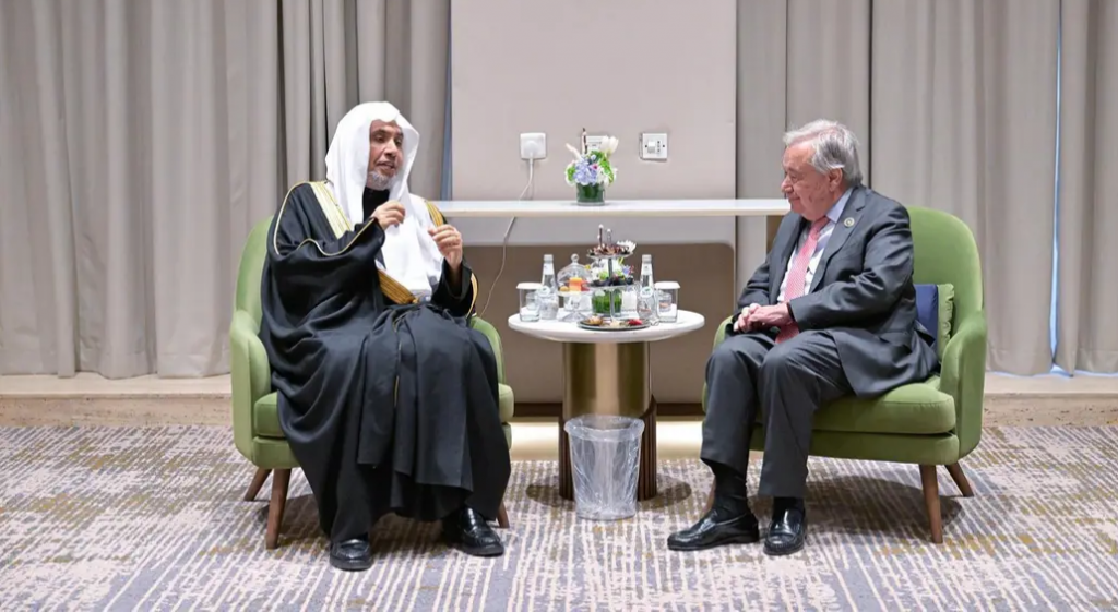التقى معالي الأمين العام لرابطة العالم الإسلامي رئيس هيئة علماء المسلمين فضيلة الشيخ الدكتور محمد بن عبدالكريم العيسى، في الرياض معالي الأمين العام للأمم المتحدة أنطونيو غوتيريش، على هامش المنتدى العالمي الحادي عشر لتحالف الأمم المتحدة للحضارات.