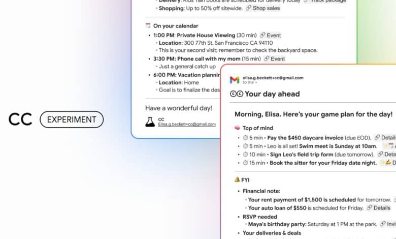 وبحسب جوجل، فإن “CC” يعمل بالتكامل مع نموذج Gemini، وهو يجمّع جدول اليوم والمهام الأساسية والتحديثات المهمة في ملخص واحد واضح يساعد المستخدم في معرفة ما ينبغي إنجازه لاحقًا. ويُرسل هذا الملخص، الذي يحمل عنوان “ما ينتظرك اليوم Your Day Ahead”، مباشرةً إلى بريد Gmail كل صباح.