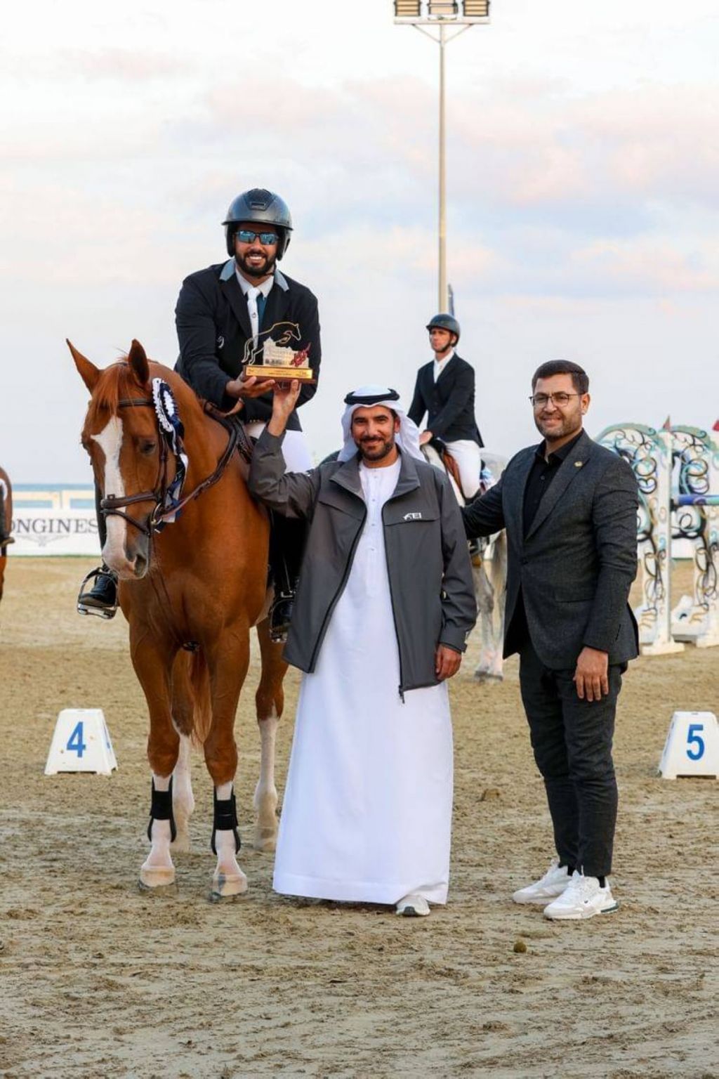 وقفز الفارس محمد غانم الهاجري إلى صدارة المنافسة الدولية من فئة الثلاث نجوم على جائزة ماجستيك بمواصفات الجولة الواحدة على حواجز بلغ ارتفاعها 135 سم تنافس فيها 36 فارساً وفارسة وأنهى 9 فرسان الجولة دون خطأ، وتقدمهم على منصة التتويج محمد غانم الهاجري بصحبة الفرس «ليليلونكا اس تي دبليو» وأكمل معها الجولة في زمن سريع بلغ 56.91 ثانية، وتوّج بجائزة المركز الثاني الفارس الإسباني هوغو الفاريز أمارو بصحبة الفرس «ابيزا دانشات كار» وأنهى الجولة في 59.67 ثانية، وحاز جائزة المركز الثالث الفارس حميد عبدالله المهيري وأكمل الجولة مع الفرس «أرجنتينا دو كريسكر زد» بزمن 59.92 ثانية.