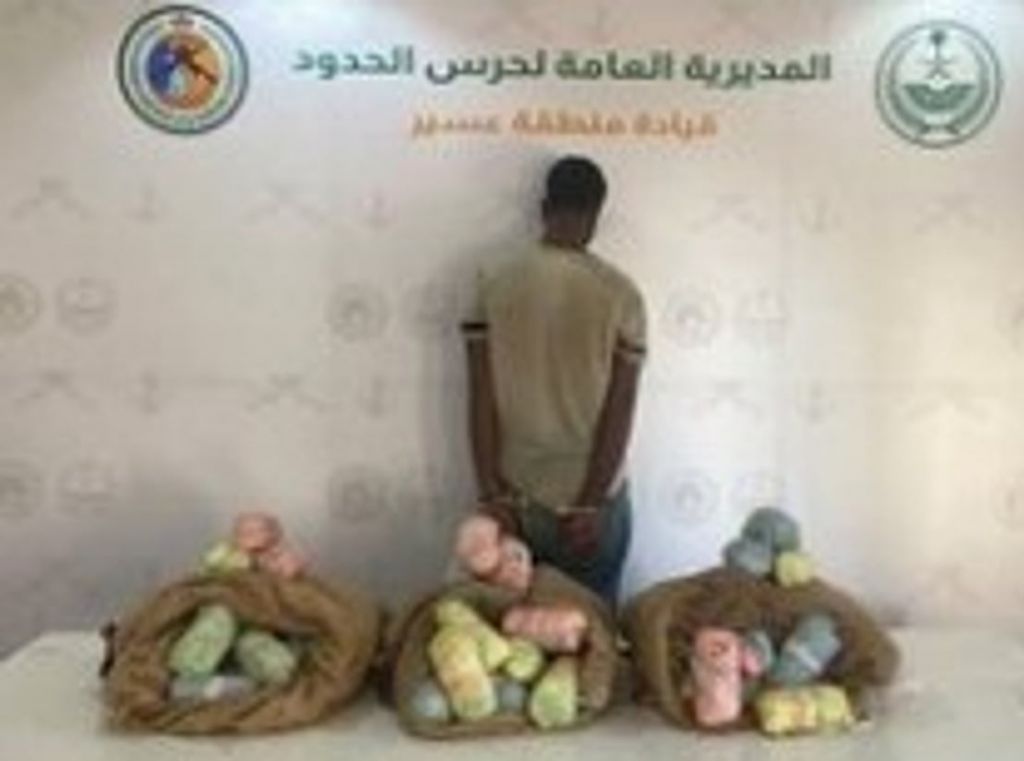 قبضت الدوريات البرية لحرس الحدود في قطاع الربوعة بمنطقة عسير على مخالف لنظام أمن الحدود من الجنسية الإثيوبية، لتهريبه (36) كيلوجراما من نبات القات المخدر.