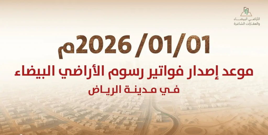أكَّدت وزارة البلديات والإسكان، أن برنامج رسوم الأراضي البيضاء والعقارات الشاغرة سيباشر إصدار أول فوترة للرسوم على الأراضي البيضاء الواقعة ضمن النطاقات الجغرافية الخاضعة للتطبيق في مدينة الرياض، وذلك اعتبارًا من 1 يناير 2026.