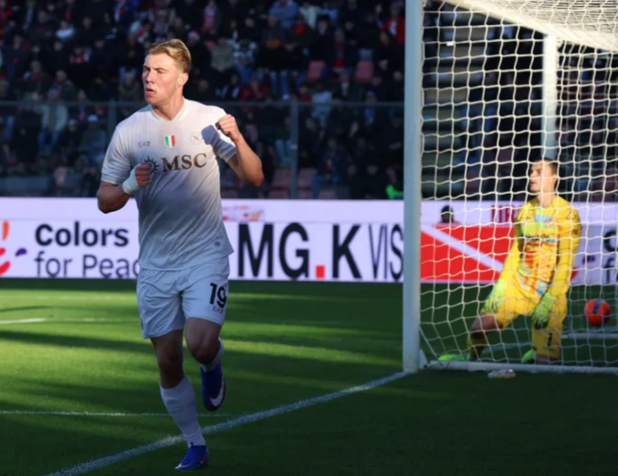 سجل راسموس هويلوند هدفين ليقود نابولي للفوز 2-صفر على مضيفه كريمونيزي اليوم الأحد، ليظل في الصراع على قمة دوري الدرجة الأولى الإيطالي لكرة *القدم.