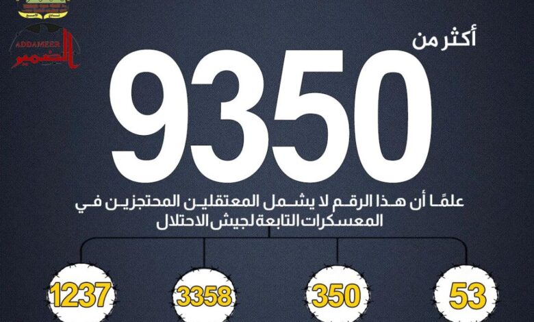 قالت مؤسسات الأسرى إن عدد الأسرى والمعتقلين في سجون الاحتلال الإسرائيلي تجاوز (9350) أسيرًا ومعتقلًا، حتى بداية شهر كانون الثاني/يناير 2026.