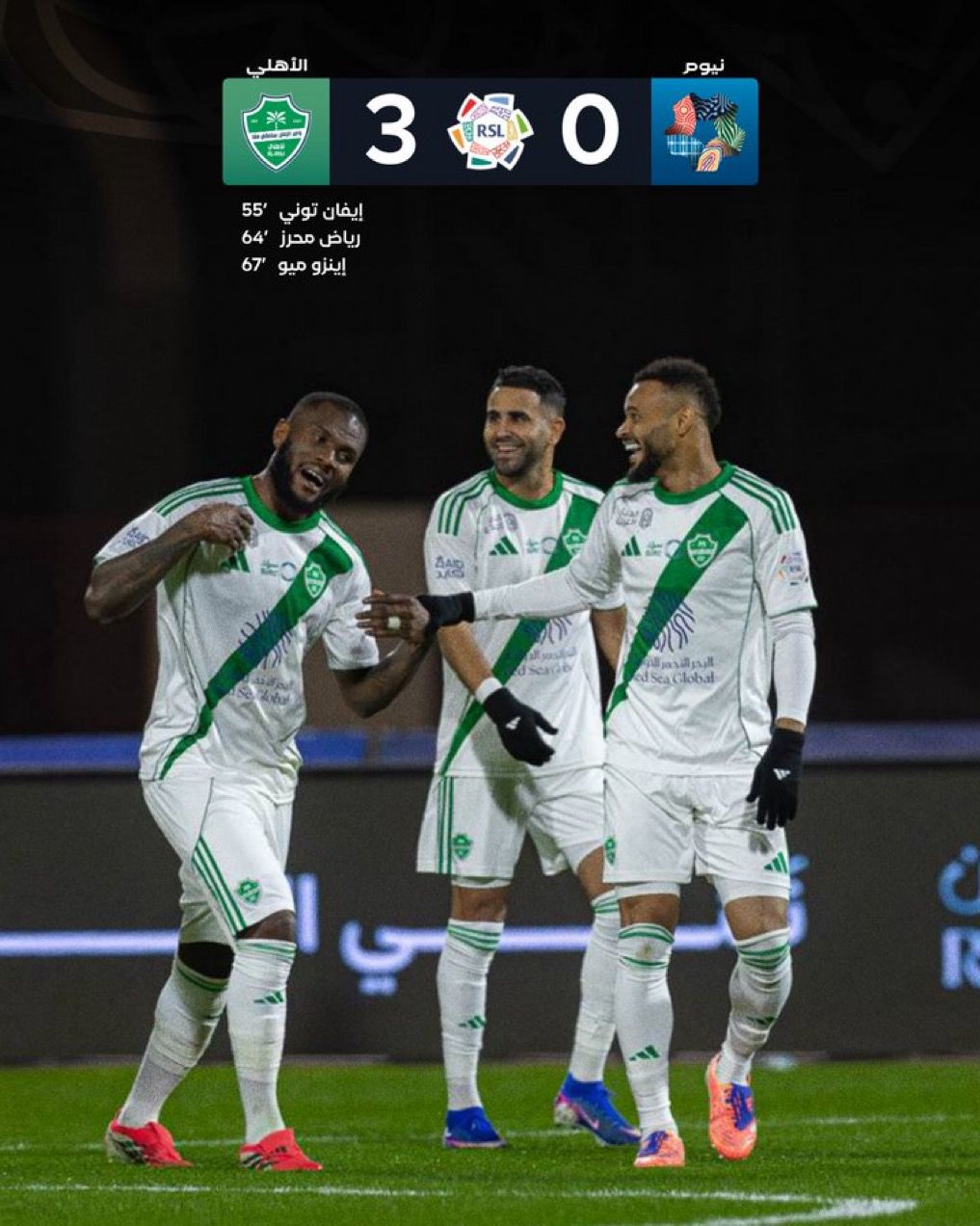 تفوق الأهلي على مضيفه نيوم بنتيجة 3-0، في المباراة التي جرت مساء اليوم السبت ضمن منافسات الجولة رقم 18 من عمر دوري روشن.