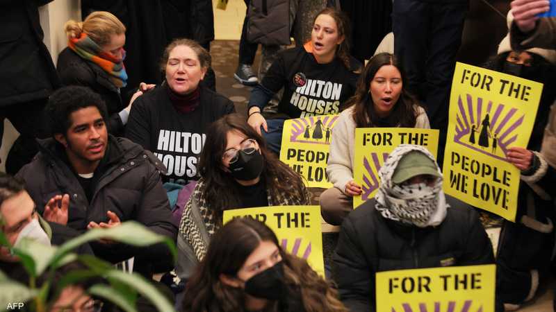 أُلقي القبض على عشرات المتظاهرين، الثلاثاء بعد اقتحامهم ردهة فندق "هیلتون غاردن إن" في مانهاتن بنيويورك، متهمين الفندق بإيواء ضباط هجرة اتحاديين.