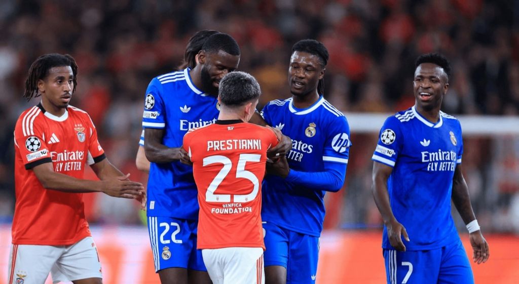 وتوقفت مباراة ذهاب الملحق المؤهل إلى ثمن نهائي مسابقة دوري أبطال أوروبا على ملعب النور في لشبونة، لأكثر من عشر دقائق بعدما تقدّم فينيسيوس بشكوى إلى الحكم الفرنسي فرانسوا لوتيكسييه بشأن الإساءة المزعومة إثر احتكاك بينه وبين بريستياني.