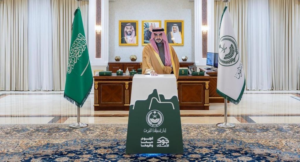 دشّن صاحب السمو الملكي الأمير فيصل بن نواف بن عبدالعزيز أمير منطقة الجوف، في مكتبه اليوم، حملة "الجود منا وفينا"، الهادفة إلى تأمين المساكن الملائمة للأسر المستحقة بكل يسر وموثوقية.