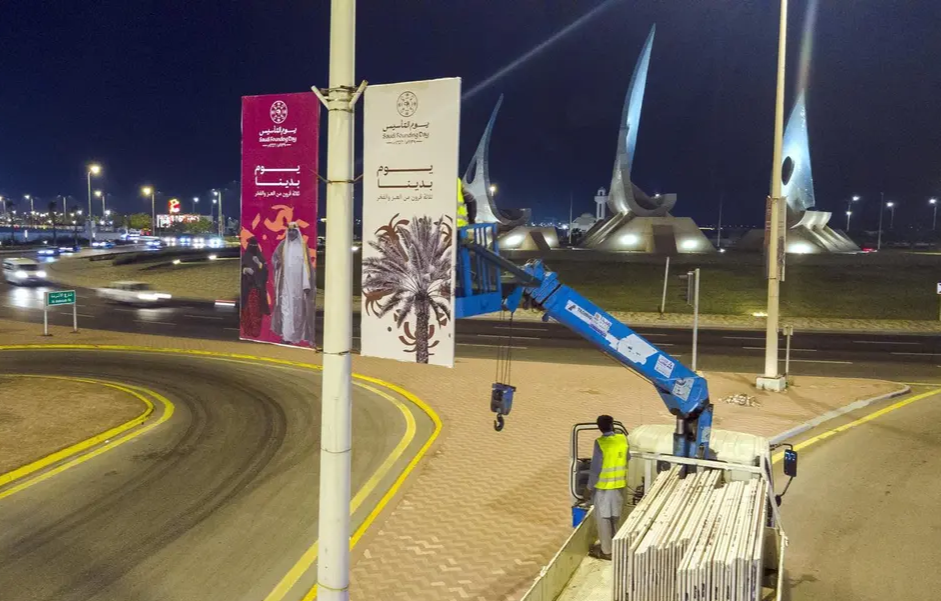 وتضمنت الخطة تنفيذ (1,561) عنصرًا بصريًا توزعت على مختلف المواقع الحيوية، منها تركيب (600) علم للمملكة على الأعمدة والسواري في الطرق المحورية والشوارع الشريانية، إضافة إلى (700) بنر يحمل هوية يوم التأسيس على أعمدة الإنارة في عدد من الطرق الرئيسة، إلى جانب (200) سارية مزودة ببنرات في التقاطعات المركزية، بما يسهم في توحيد الطابع البصري للاحتفاء في مختلف أنحاء حاضرة الدمام.