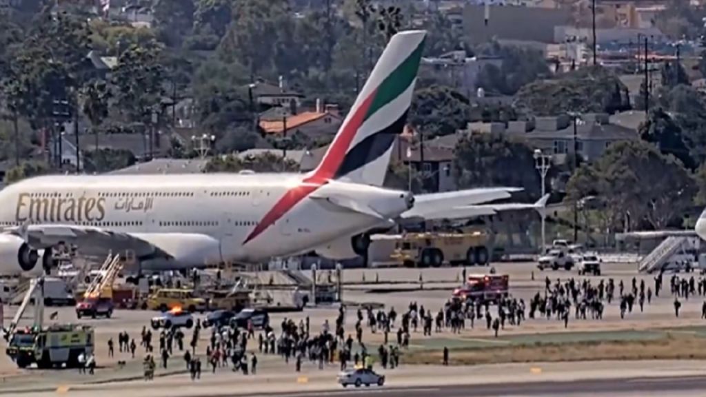 وجرى إخلاء الطائرة، ونتج عن عملية الإخلاء إصابة طفيفة.