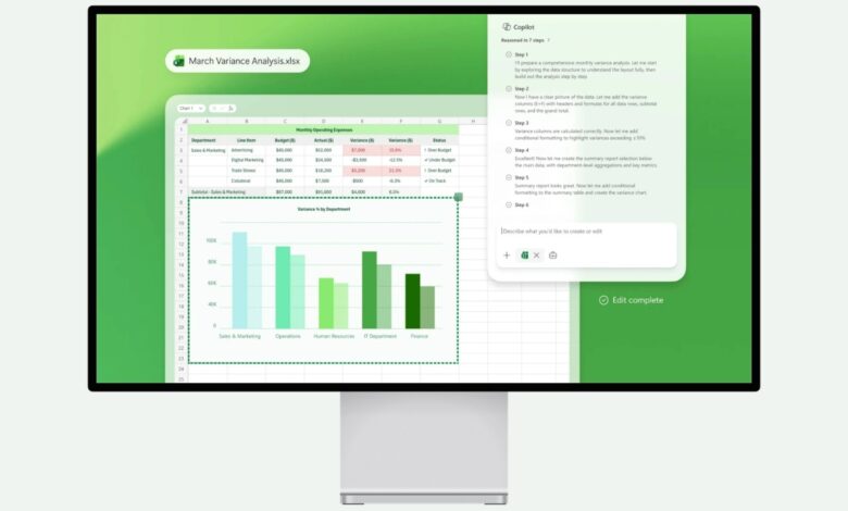 أما في Excel، فتركز التحديثات الجديدة على تحويل جداول البيانات إلى منصة تحليل تلقائي للبيانات. إذ يمكن للمستخدم طلب إنشاء توقعات مالية أو نماذج أعمال كاملة اعتمادًا على البيانات الموجودة في الجداول.