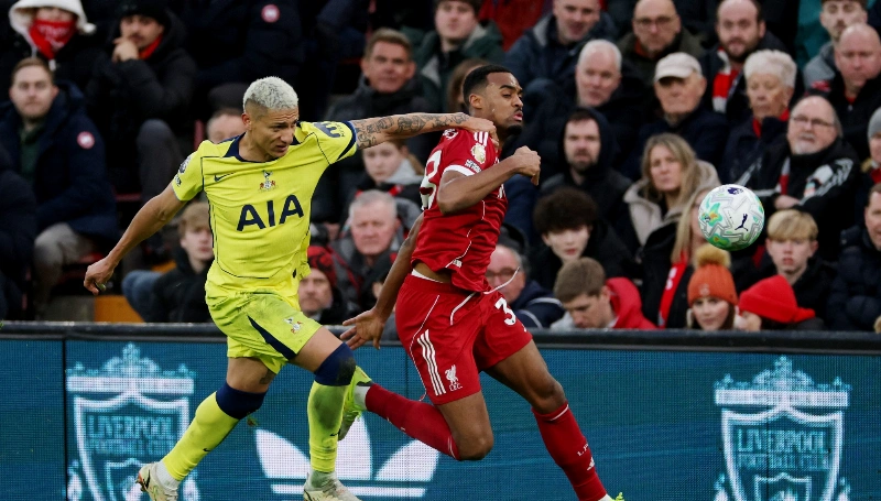 أهدر ليفربول فرصة العودة إلى المراكز الأربعة الأولى في الدوري الإنجليزي الممتاز لكرة القدم، بعدما سجل ريتشارليسون مهاجم توتنهام هوتسبير هدف التعادل 1-1 *في الدقائق *الأخيرة على ملعب *أنفيلد اليوم الأحد.