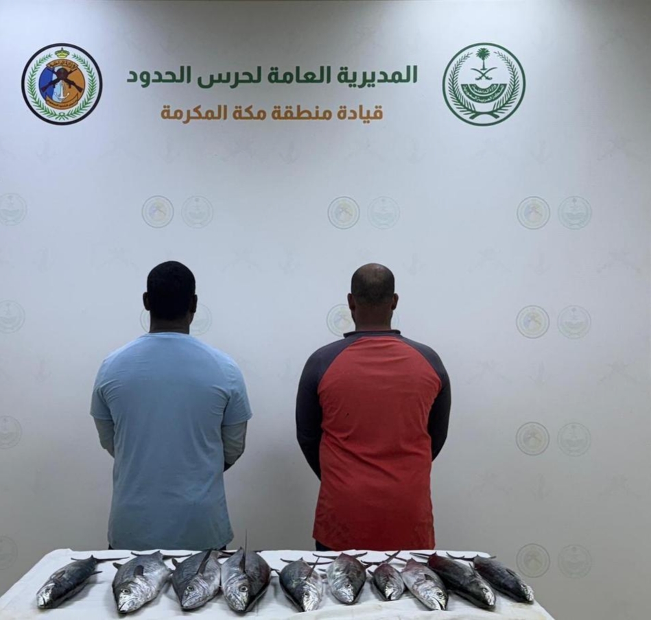 ضبطت الدوريات الساحلية لحرس الحدود في محافظة القنفذة بمنطقة مكة المكرمة، مقيمين من الجنسية الهندية مخالفين للائحة الأمن والسلامة لمزاولي الأنشطة البحرية في المناطق البحرية للمملكة العربية السعودية، وذلك لممارستهما الصيد دون تصريح، وبحوزتهما أسماك مصيدة، واتخذت الإجراءات النظامية بحقهما بالتنسيق مع الجهات المختصة.