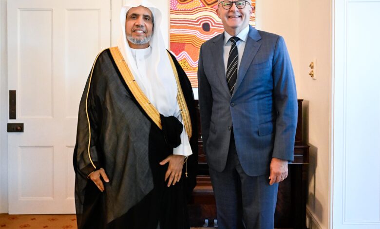 استقبلَ دولةُ رئيس الوزراء الأسترالي، السيد أنتوني ألبانيزي، في بيت رئاسة الوزراء بمدينة سيدني، معاليَ الأمين العام لرابطة العالم الإسلامي، رئيس هيئة علماء المسلمين، فضيلة الشيخ الدكتور محمد بن عبدالكريم العيسى.