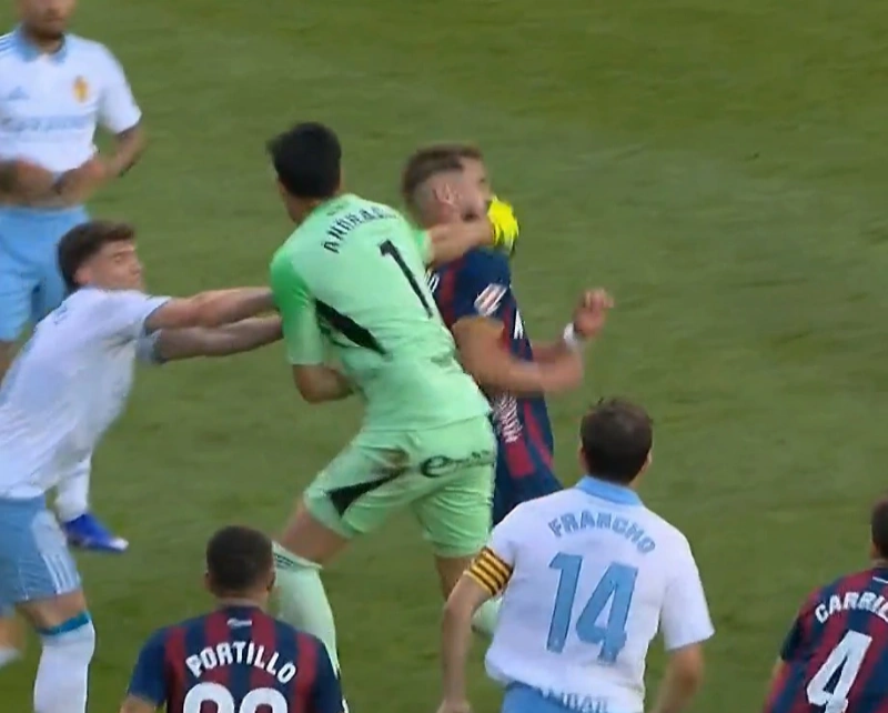 وبدأت الواقعة عندما فقد حارس سرقسطة إستيبان أندرادا أعصابه قبل صافرة النهاية، حيث توجه نحو قائد ويسكا خورخي بوليدو واعتدى عليه بالضرب، ما أشعل أجواء الفوضى داخل الملعب خلال الوقت المحتسب بدل الضائع.