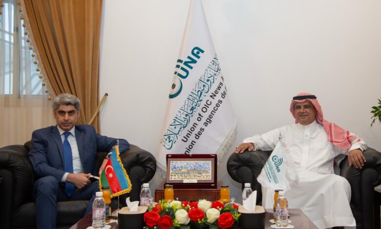 استقبل المدير العام لاتحاد وكالات أنباء دول منظمة التعاون الإسلامي “يونا”، الأستاذ محمد بن عبدربه اليامي، اليوم الاثنين 27 أبريل 2026، في مقر الاتحاد بجدة، سعادة مستشار سفارة جمهورية أذربيجان أغاجاود رمضانوف.